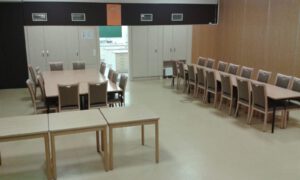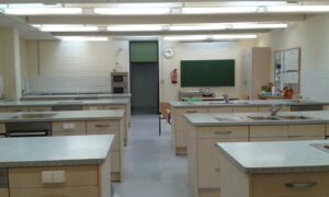 Unterrichtsraum mit Blick in die Küche